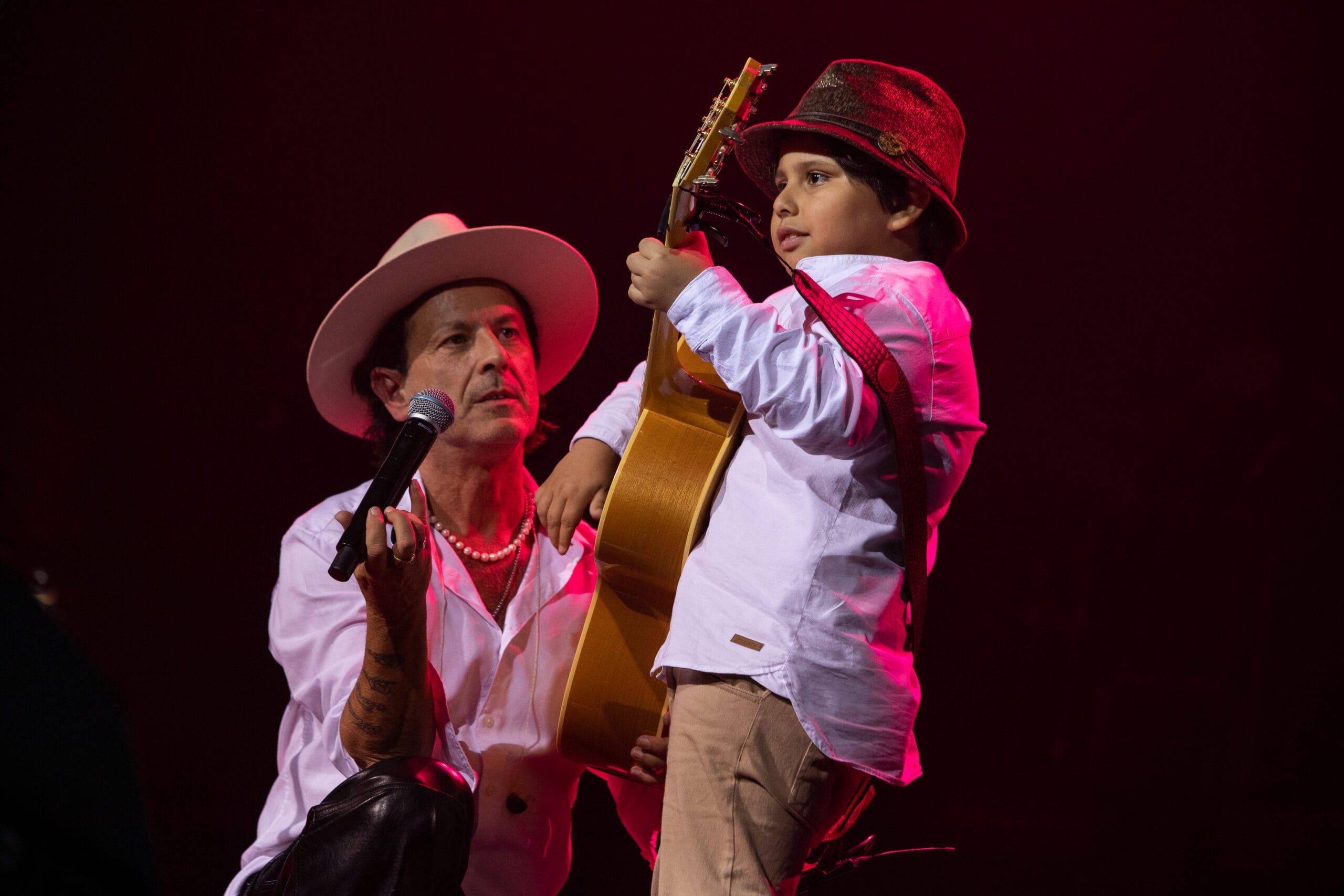 Uno de los pasajes más recordados llegó de manera espontánea: entre tema y tema, un niño del público llamado Lucio le gritó que su sueño era cantar con él. Coti lo invitó a subir al escenario y el pequeño, vestido igual que su ídolo —con camisa y sombrero—, se animó a acompañarlo en guitarra en una escena tan tierna como memorable.