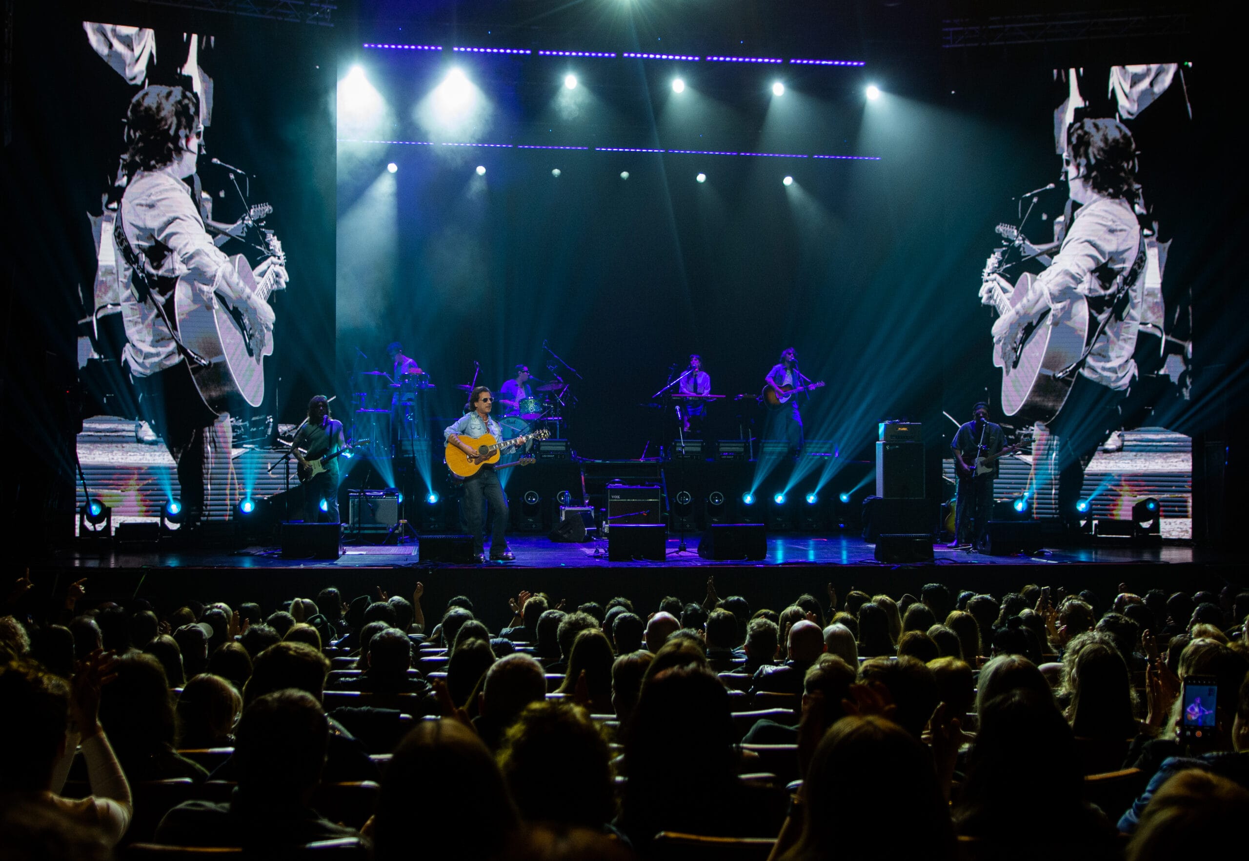 Durante más de dos horas de concierto, acompañado por su banda Los Brillantes —Daniel Espeche, Jaime Mc Lean, Luna Sujatovich, Javier Robledo, Iván Sorokin, Matías Damato y Emiliano Giménez—, el rosarino recorrió todos los momentos de su trayectoria: los clásicos propios como “Nada fue un error”, “Antes que ver el sol” y “Tu nombre”; los himnos que compuso para distintos artistas (“Color Esperanza”, “Dónde están corazón”, “Te quise tanto”); y también nuevas canciones como ”Octubre”, ”Laberinto” y “Uruguay”. “Últimamente”, estrenó nueva versión junto al mencionado cantante de Cruzando el Charco, Francisco, uno de los invitados de la noche.